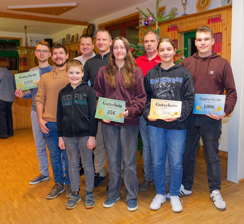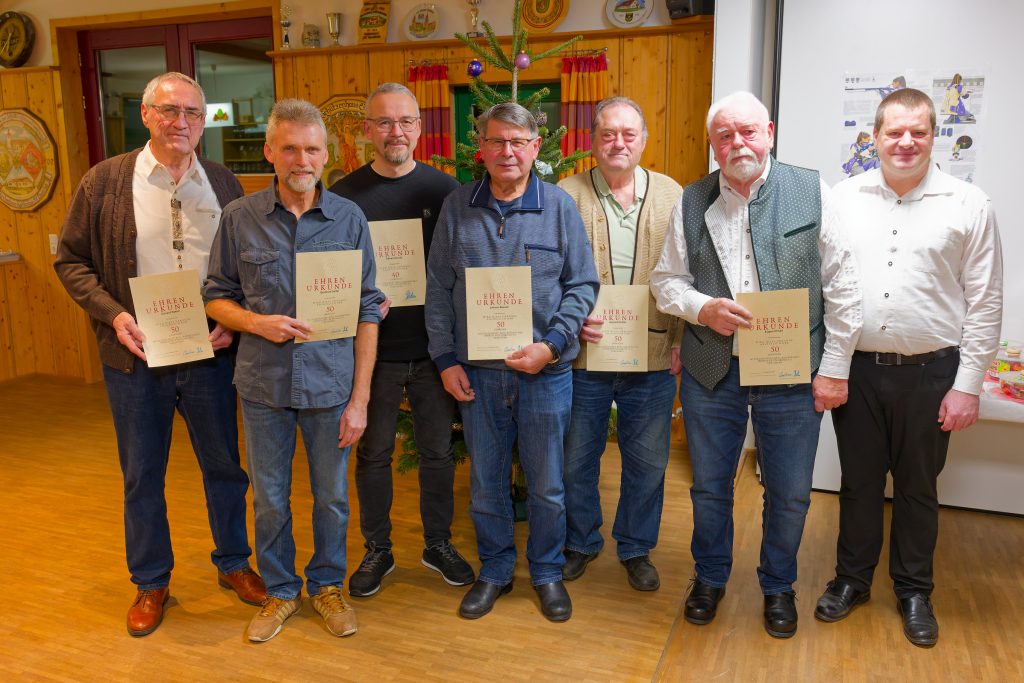 Im Rahmen der Weihnachtsfeier wurden Johann Besold, Eduard Dotzer, Herbert Dotzer, Alfons Herold, Eugen Priske, Berthold Salfer, für langjährige Mitgliedschaft im Schützenverein mit einer Urkunde und Anstecknadel geehrt. Weitere Ehrungen werden nachgereicht.